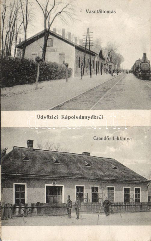 Kápolnásnyék vasútállomás és csendőr laktanya https://www.darabanth.com/de/139-Fernauktion/139.0/Ansichtskarten/Ungarn~11033/Kapolnasnyek-vasutallomas-es-csendor-laktanya~II406710