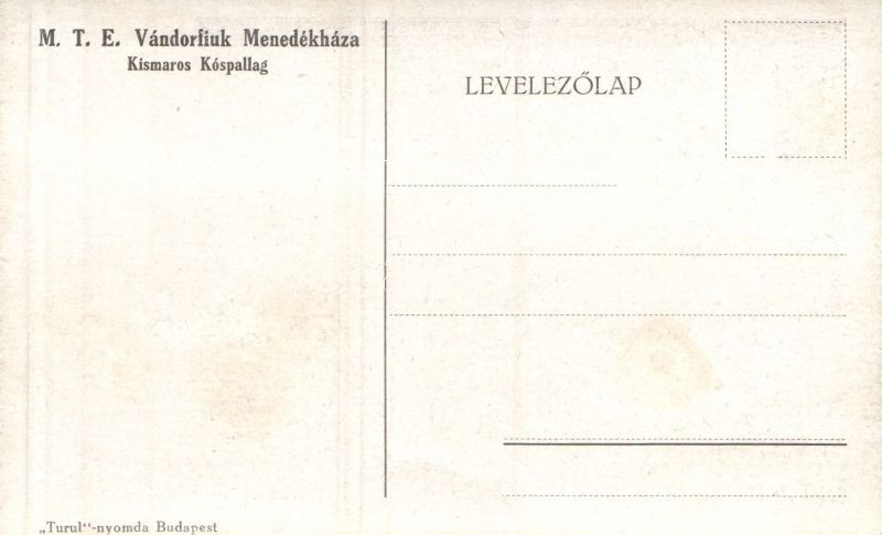 Kismaros-Kóspallag MTE Vándorfiúk Menedékháza https://www.darabanth.com/de/139-Fernauktion/139.0/Ansichtskarten/Ungarn~11033/Kismaros-Kospallag-MTE-Vandorfiuk-Menedekhaza~II408000