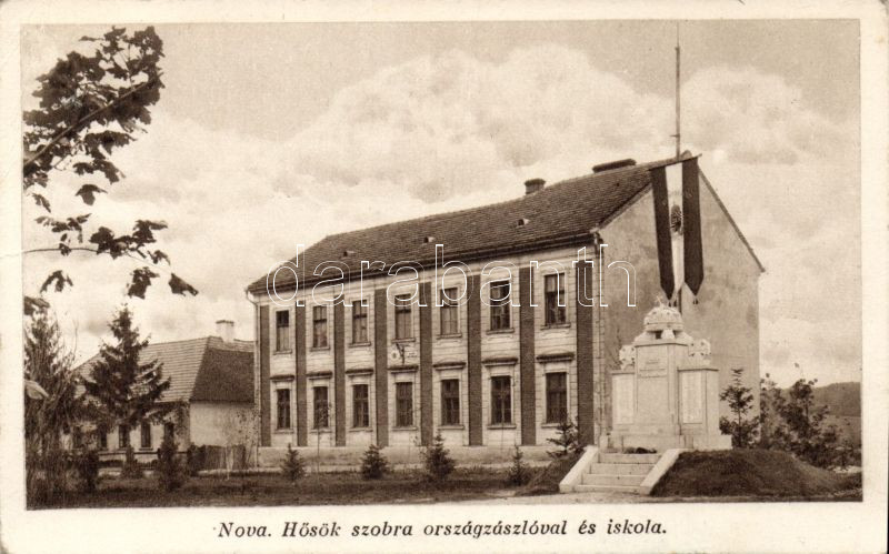 Nova hősök szobra, országzászló és iskola (EB) https://www.darabanth.com/de/139-Fernauktion/139.0/Ansichtskarten/Ungarn~11033/Nova-hosok-szobra-orszagzaszlo-es-iskola-EB~II406765