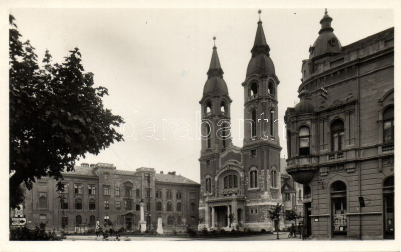 Beschreibung: Pápa Református templom és kollégium Jászberényi László fodrászüzletével
