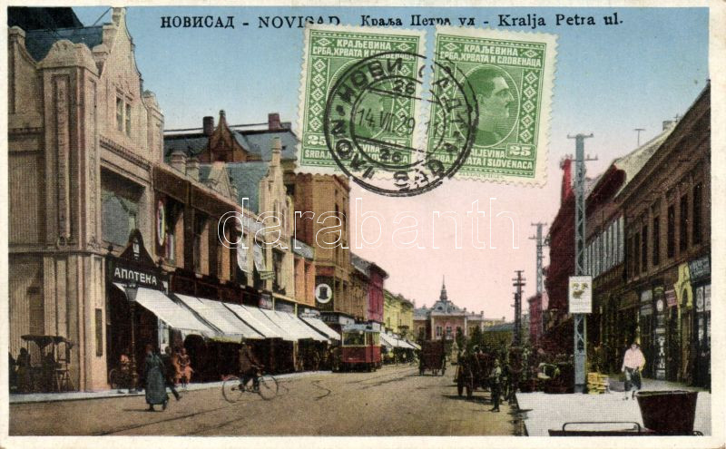 Újvidék King Peter street with tram https://www.darabanth.com/de/139-Fernauktion/139.0/Ansichtskarten/Vojvodina~11039/Ujvidek-King-Peter-street-with-tram~II405161
