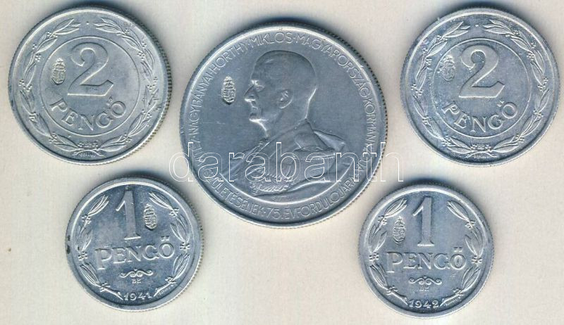 1941-43. 1P (2x) + 2P (2x) + 5P mindegyik koronás-címeres ellenjeggyel... https://www.darabanth.com/de/139-Fernauktion/139.0/Numismatik/Ungarische-Munzen~10009/1941-43-1P-2x-plus-2P-2x-plus-5P-mindegyik-koronas-cimeres-ellenjeggyel-T2-3~II406231