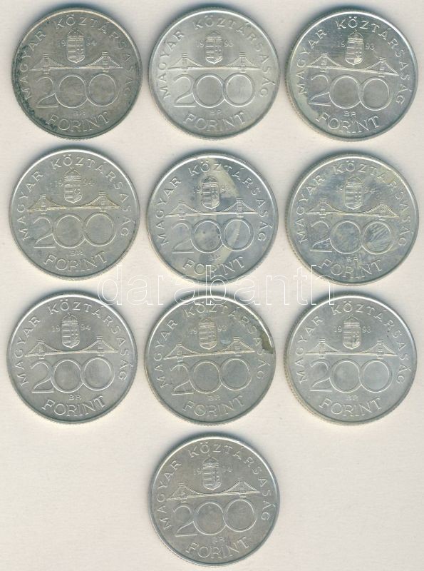 1993-94. 200Ft Ag "Deák és MNB" (10x) T:2,3 https://www.darabanth.com/de/139-Fernauktion/139.0/Numismatik/Ungarische-Munzen~10009/1993-94-200Ft-Ag-Deak-es-MNB-10x-T2-3~II406718