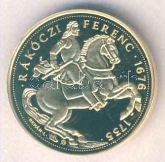 Beschreibung: "Magyar aranypénzek utánveretben - Rákóczi Ferenc jubileumi 40 pengő" aranyozott Ag emlékérem 5.5g T:PP tanúsítvánnyal, csak 2009db!