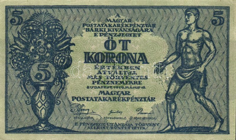 1919. 5K "Más törvényes.." T:I- https://www.darabanth.com/de/139-Fernauktion/139.0/Numismatik/Ungarische-banknoten~10008/1919-5K-Mas-torvenyes-TI-~II406245