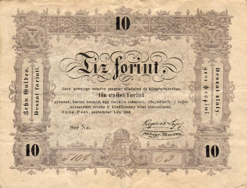 1848 10Ft több nyomdahibával T:II+ https://www.darabanth.com/de/14-Fernauktion/14.0/Numismatik/~110/1848-10Ft-tobb-nyomdahibaval-TIIplus~II23444