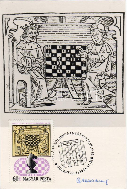 Illusztráció Caxton könyvéből, sakkbélyeggel és pecséttel, Csom nagyme... https://www.darabanth.com/de/14-Fernauktion/14.0/Philatelie/~106/Illusztracio-Caxton-konyvebol-sakkbelyeggel-es-pecsettel-Csom-nagymester-alairasaval~II20467