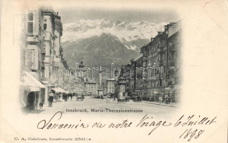 1898 Innsbruck Maria Theresia street https://www.darabanth.com/de/14-Gross-Auktion/14.1/Ansichtskarten-Ausland/Osterreich~4354/1898-Innsbruck-Maria-Theresia-street~II529002