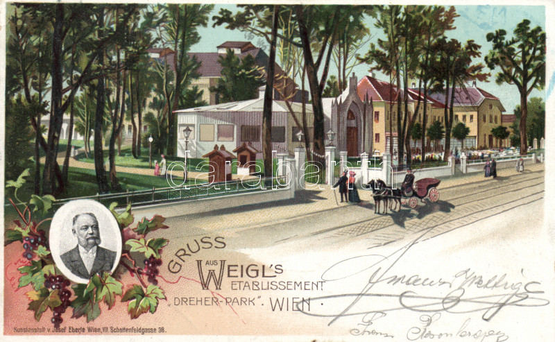 Vienna Restaurant Weigl, Dreher park litho (EK) https://www.darabanth.com/de/14-Gross-Auktion/14.1/Ansichtskarten-Ausland/Osterreich~4354/Vienna-Restaurant-Weigl-Dreher-park-litho-EK~II540789
