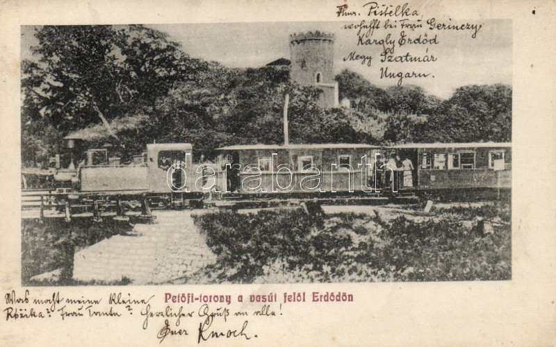 Erdőd Petőfi-torony, locomotive https://www.darabanth.com/de/14-Gross-Auktion/14.1/Ansichtskarten-Ungarn/Kroatien~4347/Erdod-Petofi-torony-locomotive~II540324