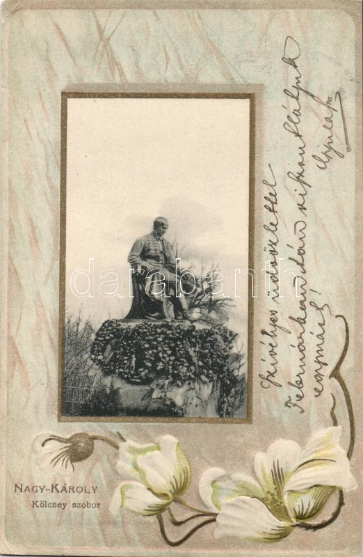 Nagykároly Kölcsey statue, Emb. litho (EK) https://www.darabanth.com/de/14-Gross-Auktion/14.1/Ansichtskarten-Ungarn/Siebenburgen~4344/Nagykaroly-Kolcsey-statue-Emb-litho-EK~II533525