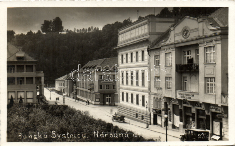 Besztercebánya National street, Bank https://www.darabanth.com/de/14-Gross-Auktion/14.1/Ansichtskarten-Ungarn/Slowakei~4345/Besztercebanya-National-street-Bank~II537541