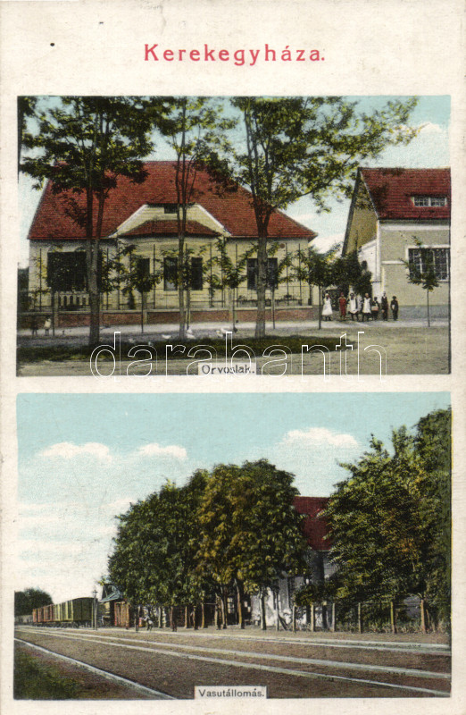 Kerekegyháza vasútállomás és orvoslak https://www.darabanth.com/de/14-Gross-Auktion/14.1/Ansichtskarten-Ungarn/Ungarn~4343/Kerekegyhaza-vasutallomas-es-orvoslak~II535211
