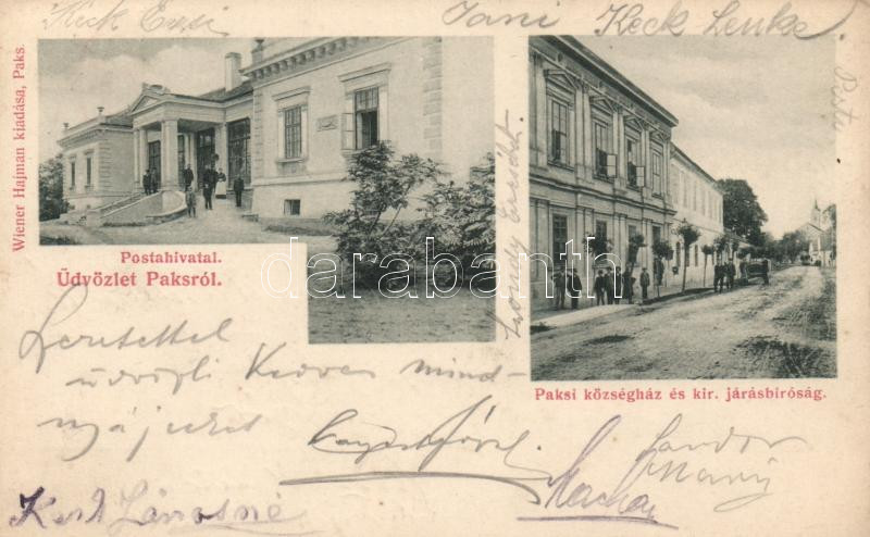 Beschreibung: Paks posta, községház, járásbíróság