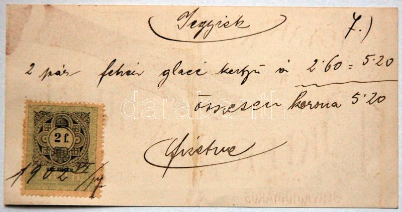 Beschreibung: 1902 Budapest V. Pikler Menyhért keztyü- és sérvkötőgyáros reklámos számlája illetékbélyeggel /