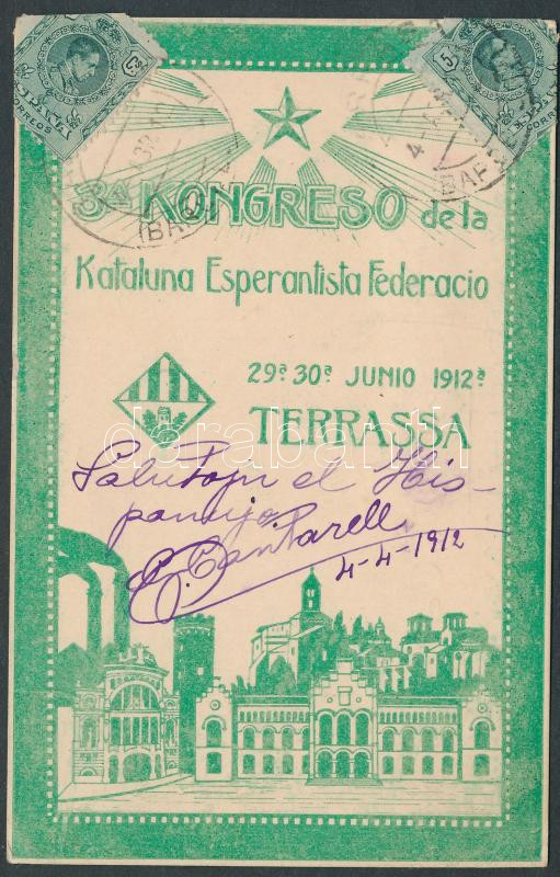 Catalan Esperanto Congress 1912 https://www.darabanth.com/de/14-Gross-Auktion/14.1/Thematik-und-Kunstlerkarten/Esperanto~4450/Catalan-Esperanto-Congress-1912~II516475