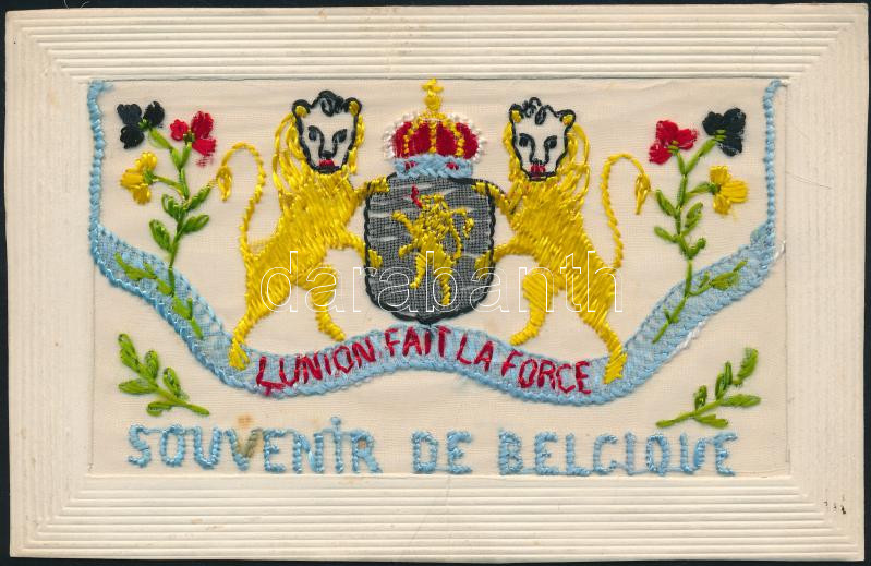 Belgian coat of arms, silk card (fa) https://www.darabanth.com/de/14-Gross-Auktion/14.1/Thematik-und-Kunstlerkarten/Flagge-Wappen~4444/Belgian-coat-of-arms-silk-card-fa~II542961