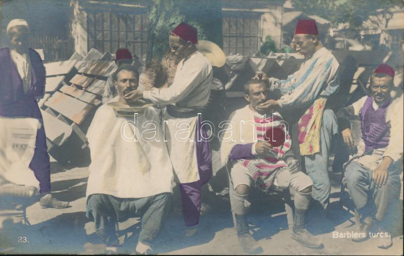 Turkish barbers, folklore https://www.darabanth.com/de/14-Gross-Auktion/14.1/Thematik-und-Kunstlerkarten/Folklore~4434/Turkish-barbers-folklore~II538236