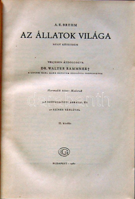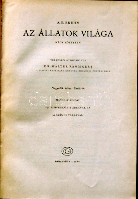 A. Brehm: Az állatok világa négy kötetben. I-IV. teljes, rajzokkal és ... https://www.darabanth.com/de/140-Fernauktion/140.0/Andere-Sammelgebiete/Bucher-Medizin~40105/A-Brehm-Az-allatok-vilaga-negy-kotetben-I-IV-teljes-rajzokkal-es-abrakkal-Bp-1960-Gon~II411898