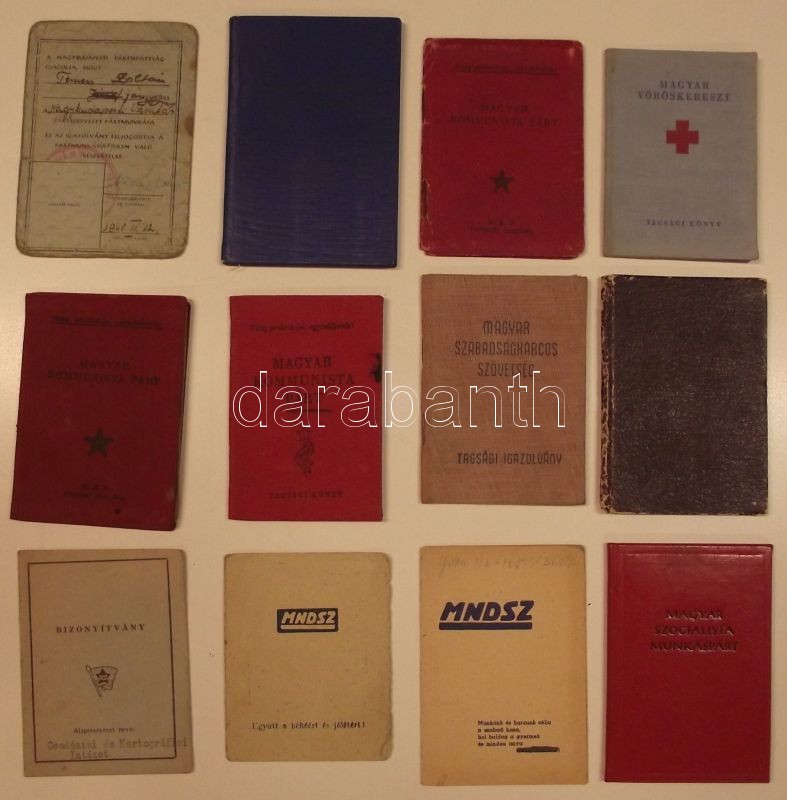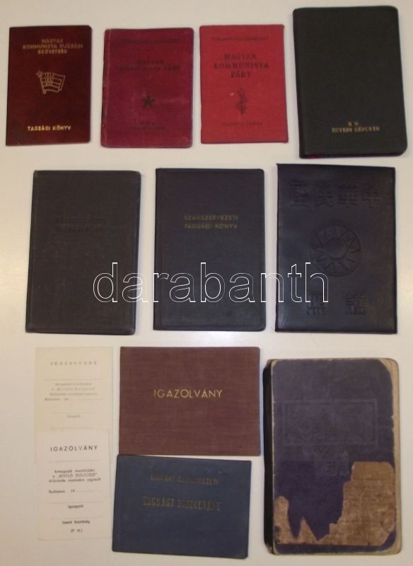 30 db vegyes igazolvány: tagsági könyvek, munkakönyvek, útlevelek, biz... https://www.darabanth.com/de/140-Fernauktion/140.0/Andere-Sammelgebiete/Dokument~40004/30-db-vegyes-igazolvany-tagsagi-konyvek-munkakonyvek-utlevelek-bizonyitvanyok-stb~II413063