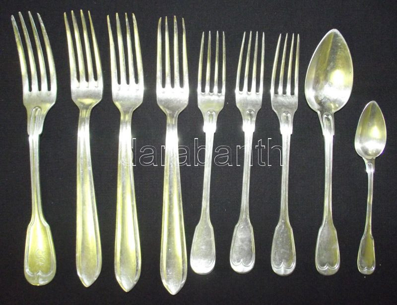 9 db ezüstözött réz evőeszköz: 7 villa + 2 kanál https://www.darabanth.com/de/140-Fernauktion/140.0/Andere-Sammelgebiete/Flohmarkt~40024/9-db-ezustozott-rez-evoeszkoz-7-villa-plus-2-kanal~II411381