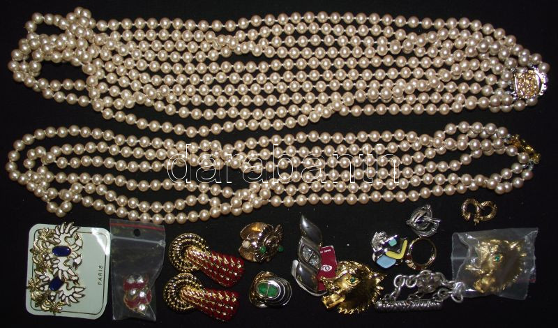 Beschreibung: Kis bizsu tétel: 13 db aranyozott, jelzett bizsu + 5 és 3 soros tekla gyöngy nyakklánc