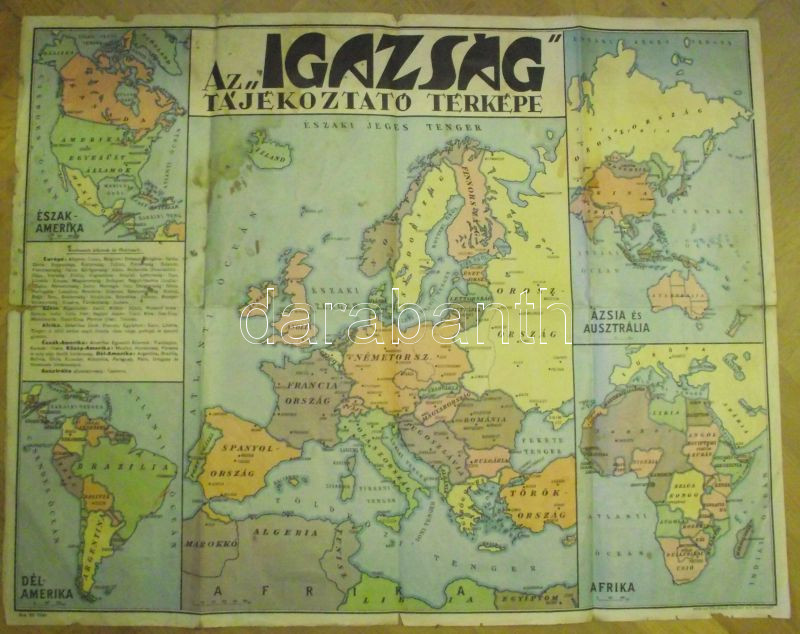 Beschreibung: ~1930 Magyar Földrajzi Intézet Rt. Budapest - Az "Igazság" tájékoztató térképe 47x62 cm