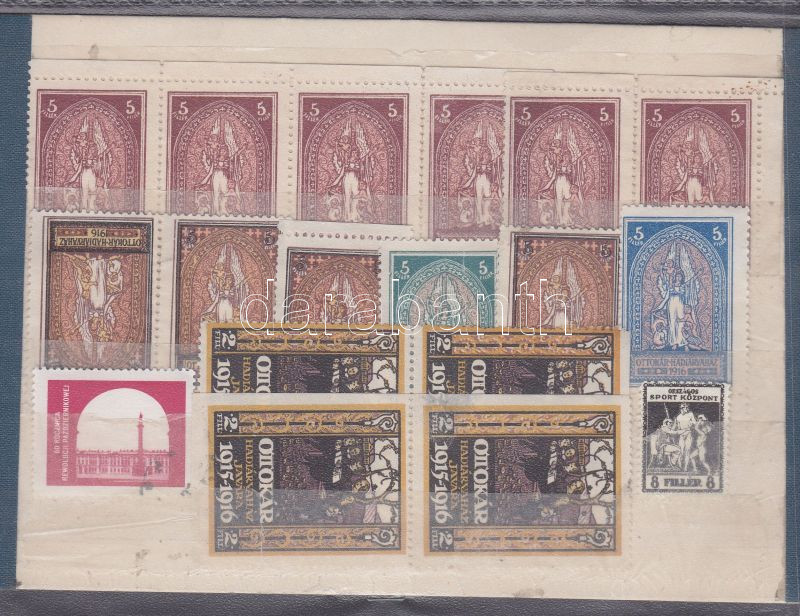 1916 18 db Segélybélyeg a hadiárvák javára, közte összefüggésekkel https://www.darabanth.com/de/140-Fernauktion/140.0/Andere-Sammelgebiete/Paraphilatelie~40002/1916-18-db-Segelybelyeg-a-hadiarvak-javara-kozte-osszefuggesekkel~II411401