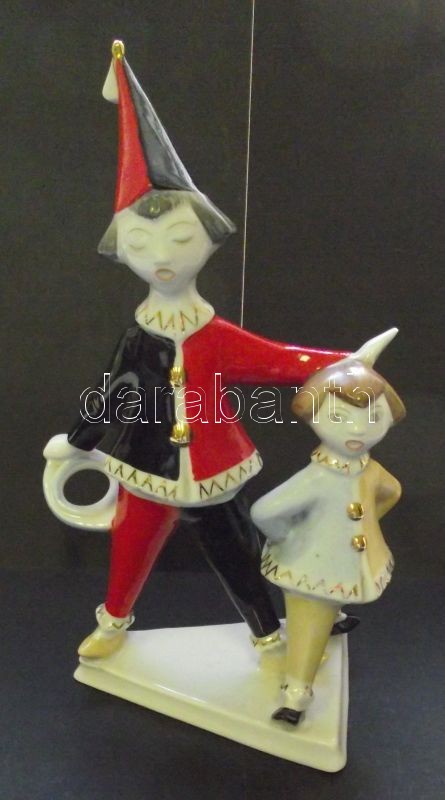 Beschreibung: Hollóházi jelzéssel ellátott porcelán bohócok / Hollóházi chinaware clowns 21 cm
