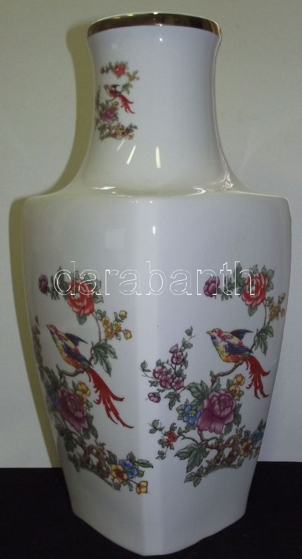 Beschreibung: Hollóházi jelzéssel ellátott virágokkal és madárral díszített nagyméretű porcelán váza / Hollóházi chinaware vase 37 cm