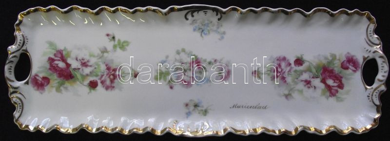 Beschreibung: Victoria Austria jelzéssel ellátott kézzel festett, aranyozott porcelán kínáló tál / Handpainted chinaware offering bowl 48x16 cm