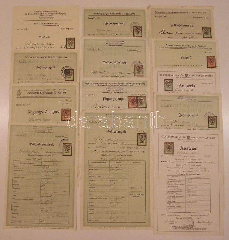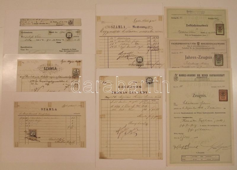 cca 1860-1935 Nagy okmánybélyeges okmány tétel: összesen 22 db magyar és osztrák okmány, köztes számlailleték is / 22 Austrian and Hungarian documents with document stamps all in good shape