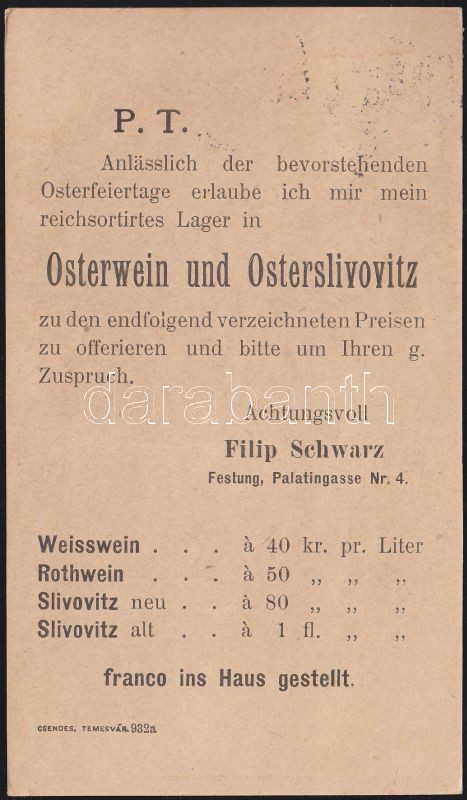 1898 Bor és pálinka árjegyzék https://www.darabanth.com/de/140-Fernauktion/140.0/Andere-Sammelgebiete/Werbungen~40012/1898-Bor-es-palinka-arjegyzek~II402866