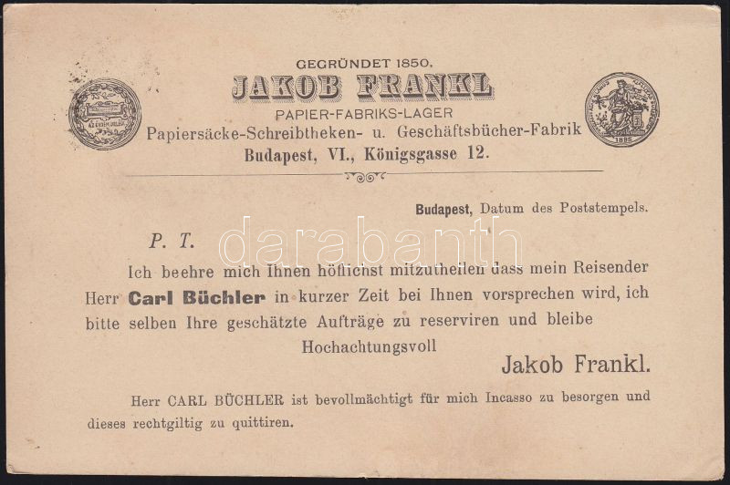 1898 Előnyomott céges levelezőlap https://www.darabanth.com/de/140-Fernauktion/140.0/Andere-Sammelgebiete/Werbungen~40012/1898-Elonyomott-ceges-levelezolap~II402880