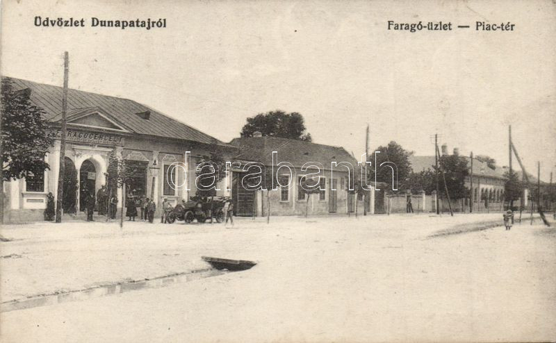 Dunapataj Piac tér a Faragó-üzlettel https://www.darabanth.com/de/140-Fernauktion/140.0/Ansichtskarten/Ungarn~20005/Dunapataj-Piac-ter-a-Farago-uzlettel~II410457