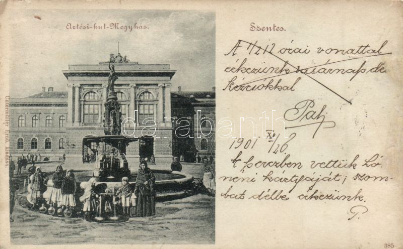 Szentes Artézi kút és Megyeház (cut) https://www.darabanth.com/de/140-Fernauktion/140.0/Ansichtskarten/Ungarn~20005/Szentes-Artezi-kut-es-Megyehaz-cut~II409597