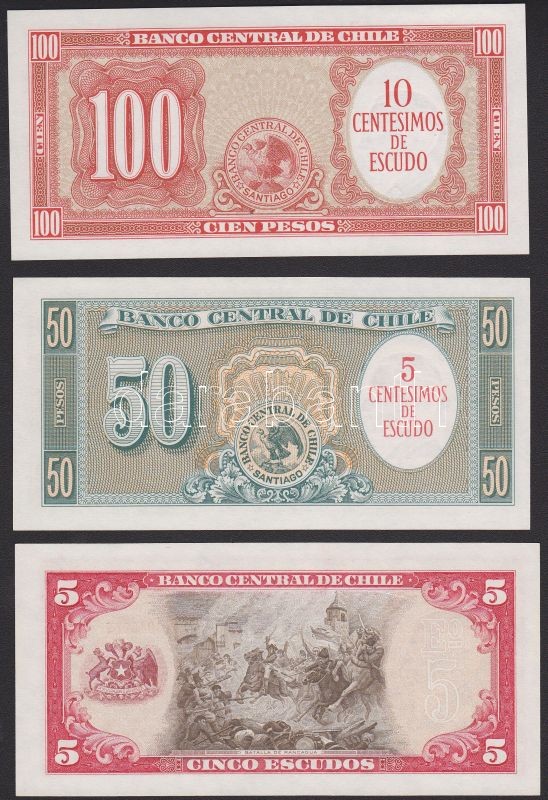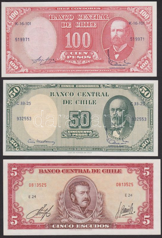 Chile 1958-59. 5P + 1960-61. 50P + 100P + 1964. 5Esc + 1967-76. 10Esc ... https://www.darabanth.com/de/140-Fernauktion/140.0/Numismatik/Auslandische-Banknoten~10012/Chile-1958-59-5P-plus-1960-61-50P-plus-100P-plus-1964-5Esc-plus-1967-76-10Esc-TI~II410912