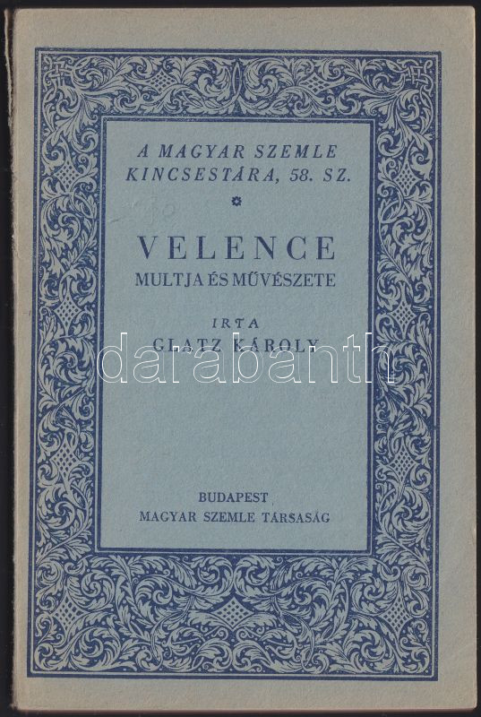 1929 Glatz Károly: Velence múltja és története, Magyar Szemle Társaság... https://www.darabanth.com/de/141-Fernauktion/141.0/Andere-Sammelgebiete/Bucher-Architektur-Kunst~20019/1929-Glatz-Karoly-Velence-multja-es-tortenete-Magyar-Szemle-Tarsasag-papirkotesben~II418597