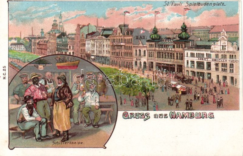 Hamburg with Fishermen´s Pub and Ernst Drucker Theatre litho https://www.darabanth.com/de/141-Fernauktion/141.0/Ansichtskarten/Deutschland~20039/Hamburg-with-Fishermens-Pub-and-Ernst-Drucker-Theatre-litho~II371122