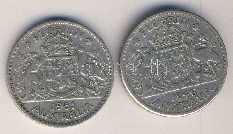 Ausztrália 1946-1951. 1Fl Ag (2x) T:3 https://www.darabanth.com/de/141-Fernauktion/141.0/Numismatik/Auslandische-Munzen~10013/Ausztralia-1946-1951-1Fl-Ag-2x-T3~II419179