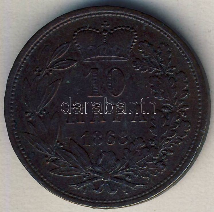 Szerbia 1868. 10P "III. Mihály" T:2-/3 https://www.darabanth.com/de/141-Fernauktion/141.0/Numismatik/Auslandische-Munzen~10013/Szerbia-1868-10P-III-Mihaly-T2-3~II416931