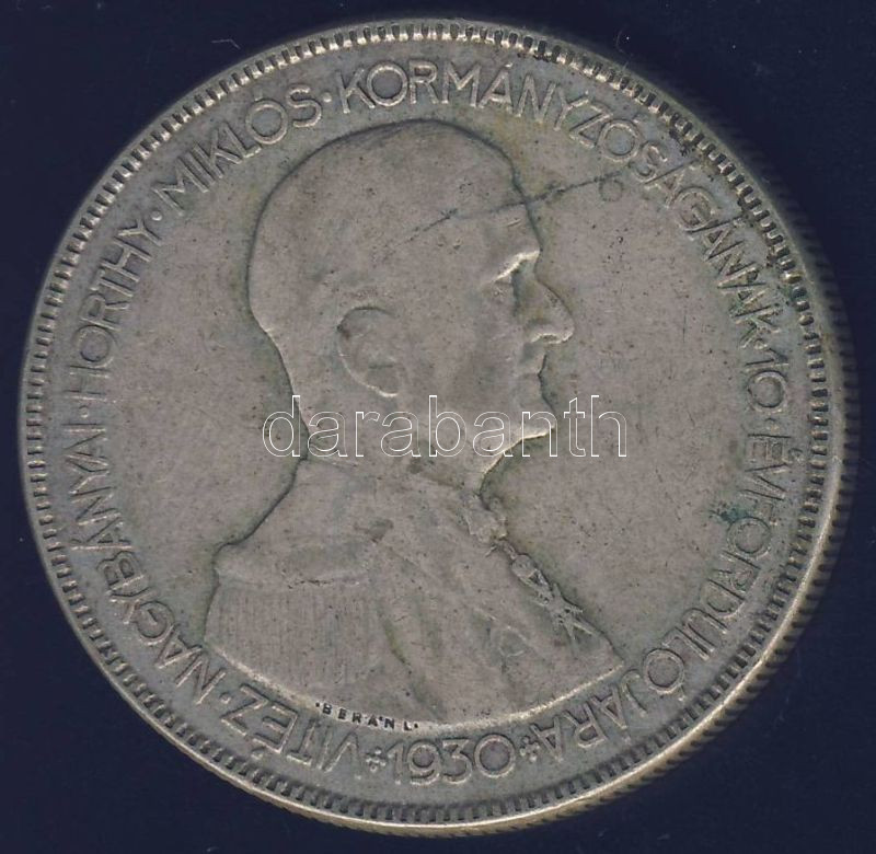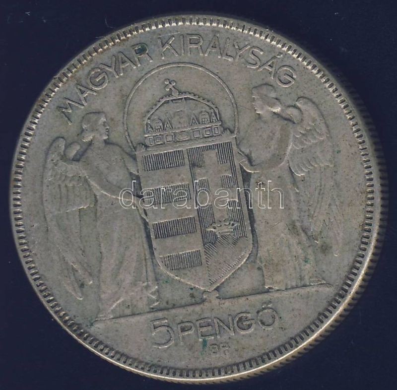 1930. 5P Ag "Horthy jobbra" T:3 https://www.darabanth.com/de/141-Fernauktion/141.0/Numismatik/Ungarische-Munzen~10009/1930-5P-Ag-Horthy-jobbra-T3~II418271