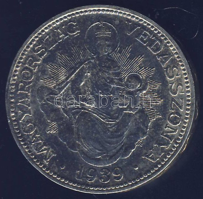 1938. 2P Ag "Madonna" T:2/2- patina https://www.darabanth.com/de/141-Fernauktion/141.0/Numismatik/Ungarische-Munzen~10009/1938-2P-Ag-Madonna-T22-patina~II418670