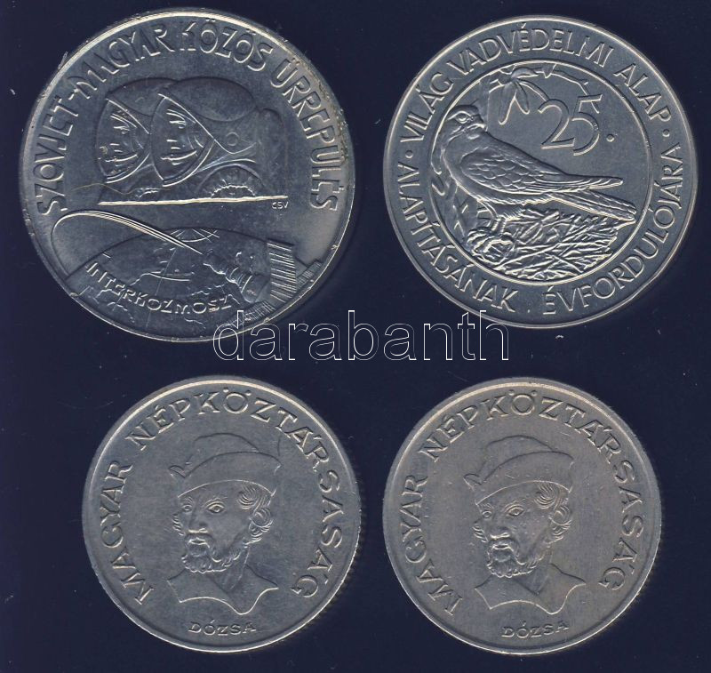 Beschreibung: 1988. 50Ft "Világ Vadvédelmi Alap II." + 1980. 100Ft "Szovjet-magyar közös űrrepülés" + 1985-1989. 20Ft (2x) T:Bu,2