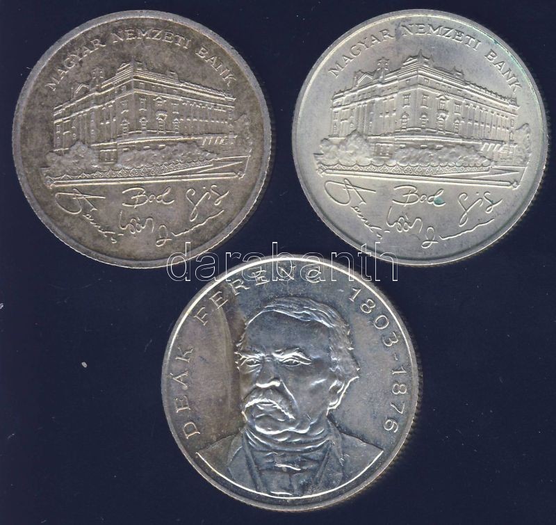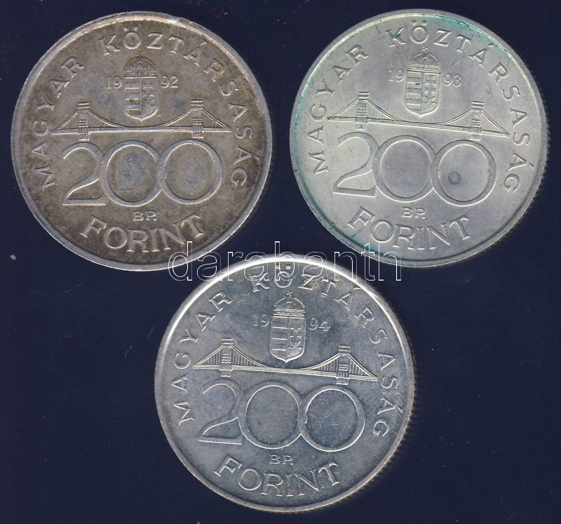 1992-94. 200Ft Ag "MNB,Deák" (3x) T:2,2- https://www.darabanth.com/de/141-Fernauktion/141.0/Numismatik/Ungarische-Munzen~10009/1992-94-200Ft-Ag-MNB-Deak-3x-T2-2-~II418479