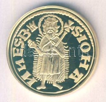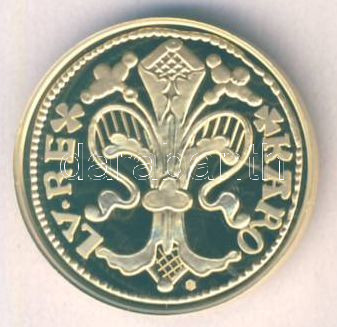 "Magyar aranypénzek utánveretben - Károly Róbert aranyforint" aranyozott Ag emlékérem 5.5g T:PP tanúsítvánnyal, csak 2009db!