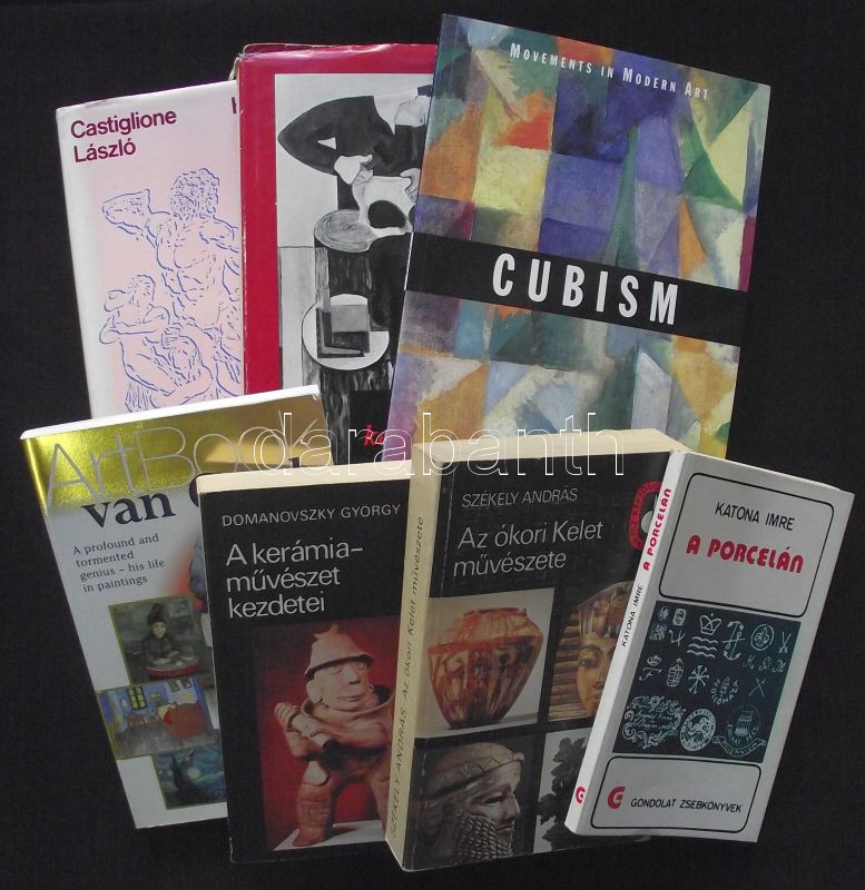 7 db klf művészeti könyv: A kerámiaművészet kezdetei, Az ókori Kelet művészete, A porcelán, Van Gogh, Cubism, A szocialista művészet nyomában, Hellénisztikus művészet