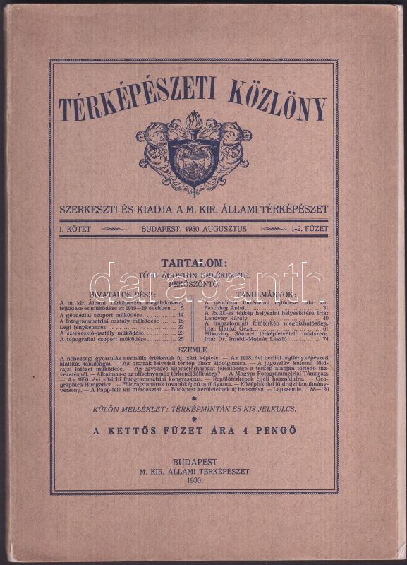 1930 Térképészeti közlöny a Magyar Királyi Állami térképészet kiadásáb... https://www.darabanth.com/de/142-Fernauktion/142.0/Andere-Sammelgebiete/Bucher-Sonstige-Raritaten~172/1930-Terkepeszeti-kozlony-a-Magyar-Kiralyi-Allami-terkepeszet-kiadasaban-4P~II423093