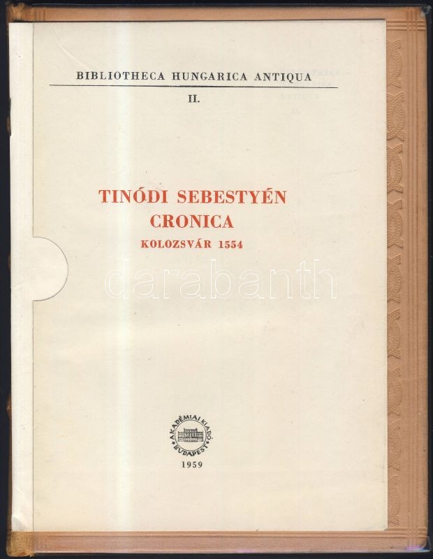 Tinódi Sebestyén: Cronica. Kolozsvár, 1554. Facsimile kiadás tanulmánn... https://www.darabanth.com/de/142-Fernauktion/142.0/Andere-Sammelgebiete/Bucher-Sonstige-Raritaten~172/Tinodi-Sebestyen-Cronica-Kolozsvar-1554-Facsimile-kiadas-tanulmannyal-Bp-1959-Akademiai~II412033