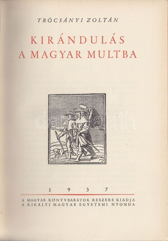 Bp., 1937. Kir. M. Egye... https://www.darabanth.com/de/142-Fernauktion/142.0/Andere-Sammelgebiete/Bucher-Sonstige-Raritaten~172/Trocsanyi-Zoltan-Kirandulas-a-magyar-multba--Bp-1937-Kir-M-Egyetemi-Nyomda-Aranyozott-~II412019